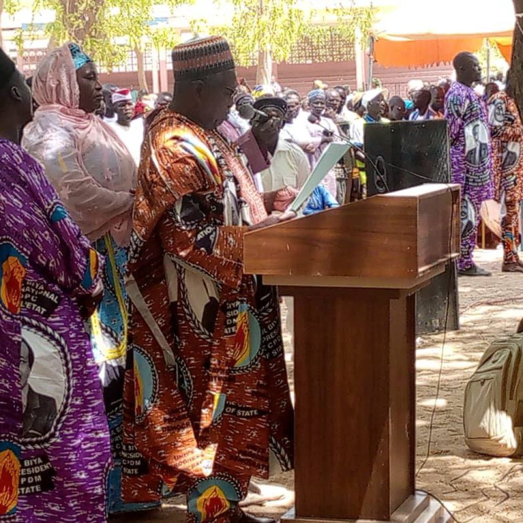 Ces manifestations ont débuté par une marche de soutien à S.E.M Paul BIYA, Président de la République et Président national du RDPC, sur l’itinéraire Place des fêtes de la ville de Tokombéré – Carrefour Gendarmerie – Carrefour Commune – permanence du parti RDPC où se déroulait ladite célébration placée sous le thème “Tenons-nous prêts derrière le Président Paul BIYA, à relever le défi de la victoire nette, transparente et sans bavure du candidat du RDPC à l’élection présidentielle,” en présence des autorités politiques et administratives dont le Sous-préfet de l’arrondissementde Tokombéré M. SALIHOU Abbo.